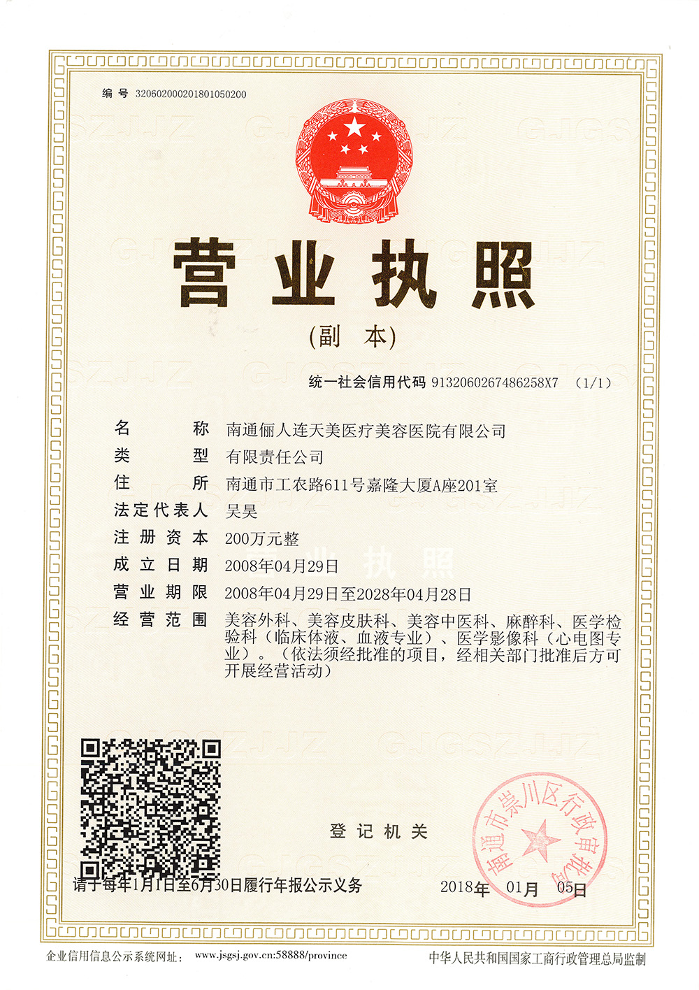 南通儷人連天美醫(yī)療美容醫(yī)院是與著名的醫(yī)療美容集團(tuán)合作建立的醫(yī)院,醫(yī)院提供高品質(zhì)的醫(yī)療美容服務(wù)。2008年,南通儷人連天美醫(yī)療美容醫(yī)院落戶南通,成為由南通衛(wèi)生局審批的專業(yè)醫(yī)療美容醫(yī)院。南通儷人連天美醫(yī)療美容醫(yī)院,特別設(shè)有專業(yè)的整形美容科、皮膚美容科和微創(chuàng)美容科三大科室,致力于為廣大求美者提供全方位的醫(yī)療美容服務(wù)。南通儷人連天美醫(yī)療美容醫(yī)院為求美者建立個(gè)人終生美麗檔案,一對一進(jìn)行細(xì)致服務(wù)。 11年來,南通儷人連天美醫(yī)療美容醫(yī)院,不斷引進(jìn)先進(jìn)設(shè)備,不斷完善醫(yī)美技術(shù),一批優(yōu)秀、專業(yè)而穩(wěn)定的醫(yī)生團(tuán)隊(duì),為無數(shù)求美者鑄就美麗夢想。